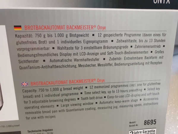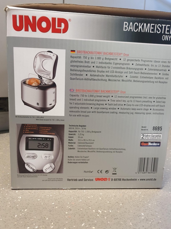 Gerade verfügbarBrotbackautomat für 750 g bis 1000g Brotgewicht