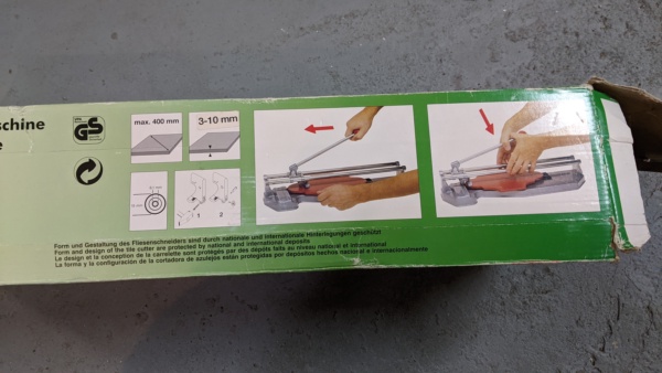 Gerade verfügbarFliesenschneidemaschine, Fliesenschneider von Jokosit. Max 400mm Schnittlänge, 3-10mm Schnitttiefe.